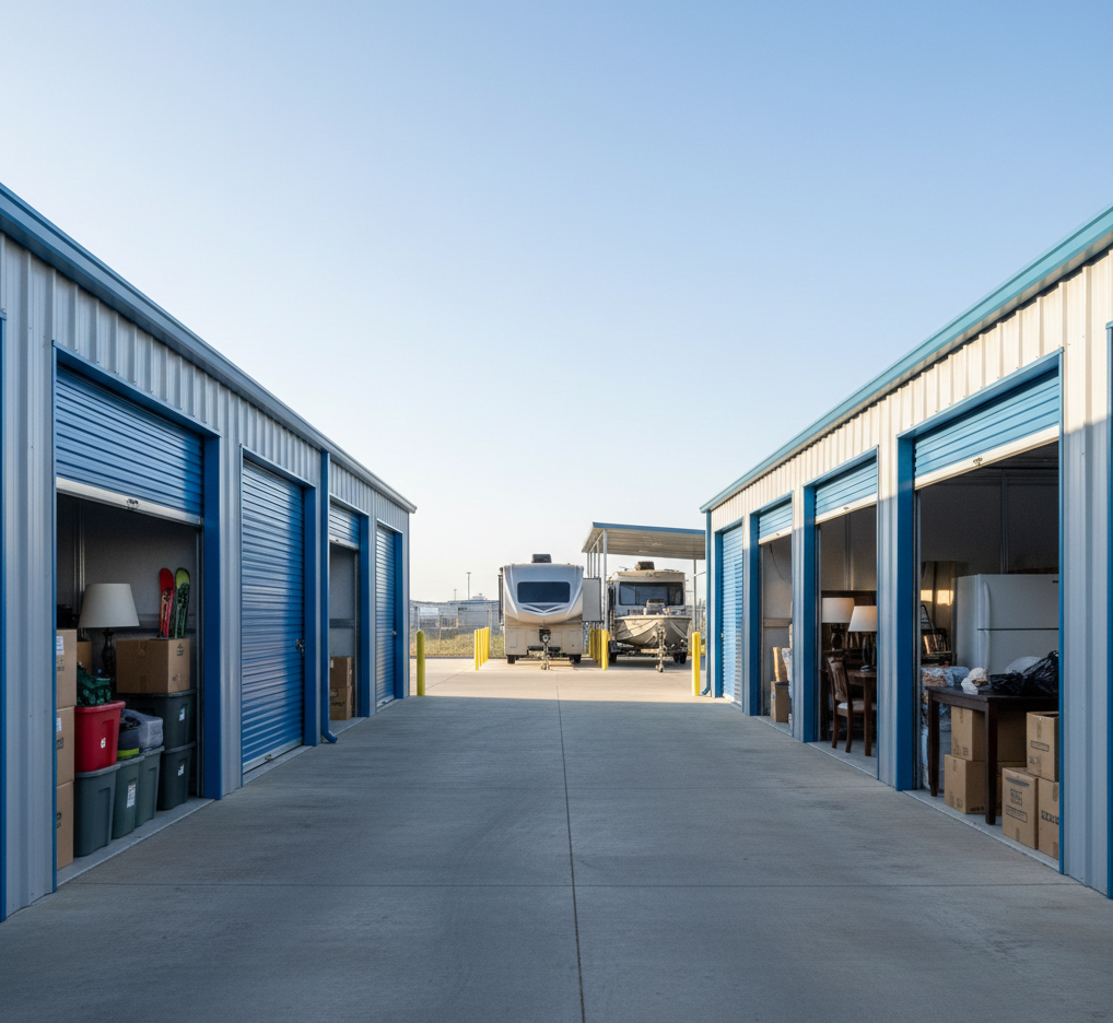 - Small Units (e.g., 5×10): Perfect for a few boxes, small appliances, holiday décor, and seasonal gear.